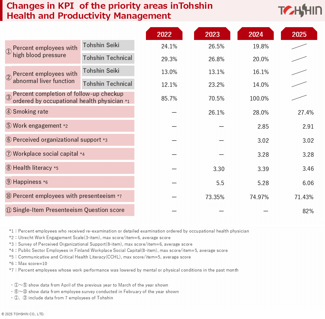 在新冠病毒感染扩大的期间,通过与地区企业、医疗机构及政府部门的协作,成功实施了三次职域疫苗接种。2022年设立了健康经营担当执行官,推动了员工食堂的改造、心理健康的关怀、举办女性健康讲座及学术会议发言等多项活动。由此,集团旗下三家公司自2023年起连续三年被评为健康经营优秀法人(中小规模法人部门)中的全国前500名“Bright 500”。