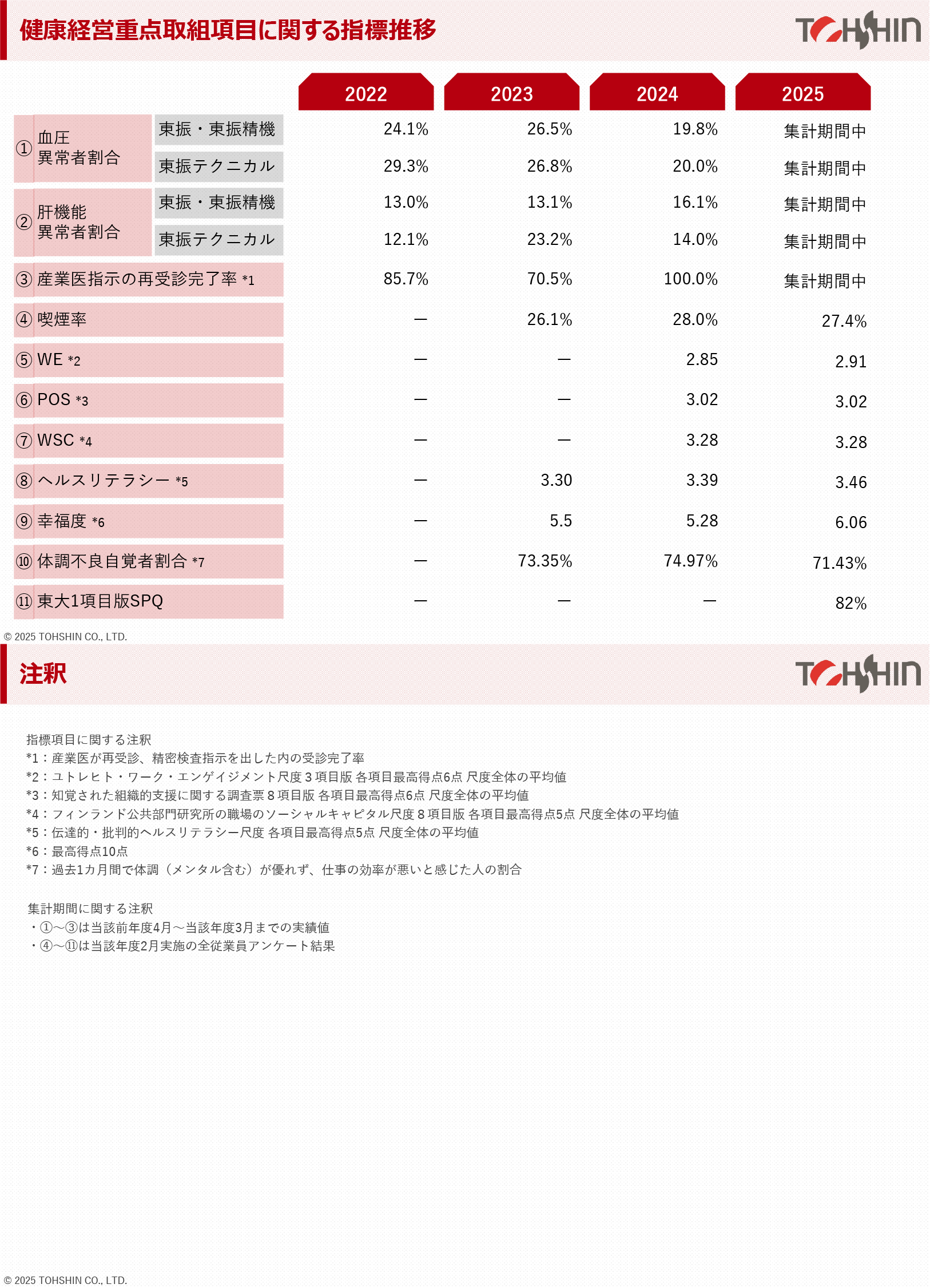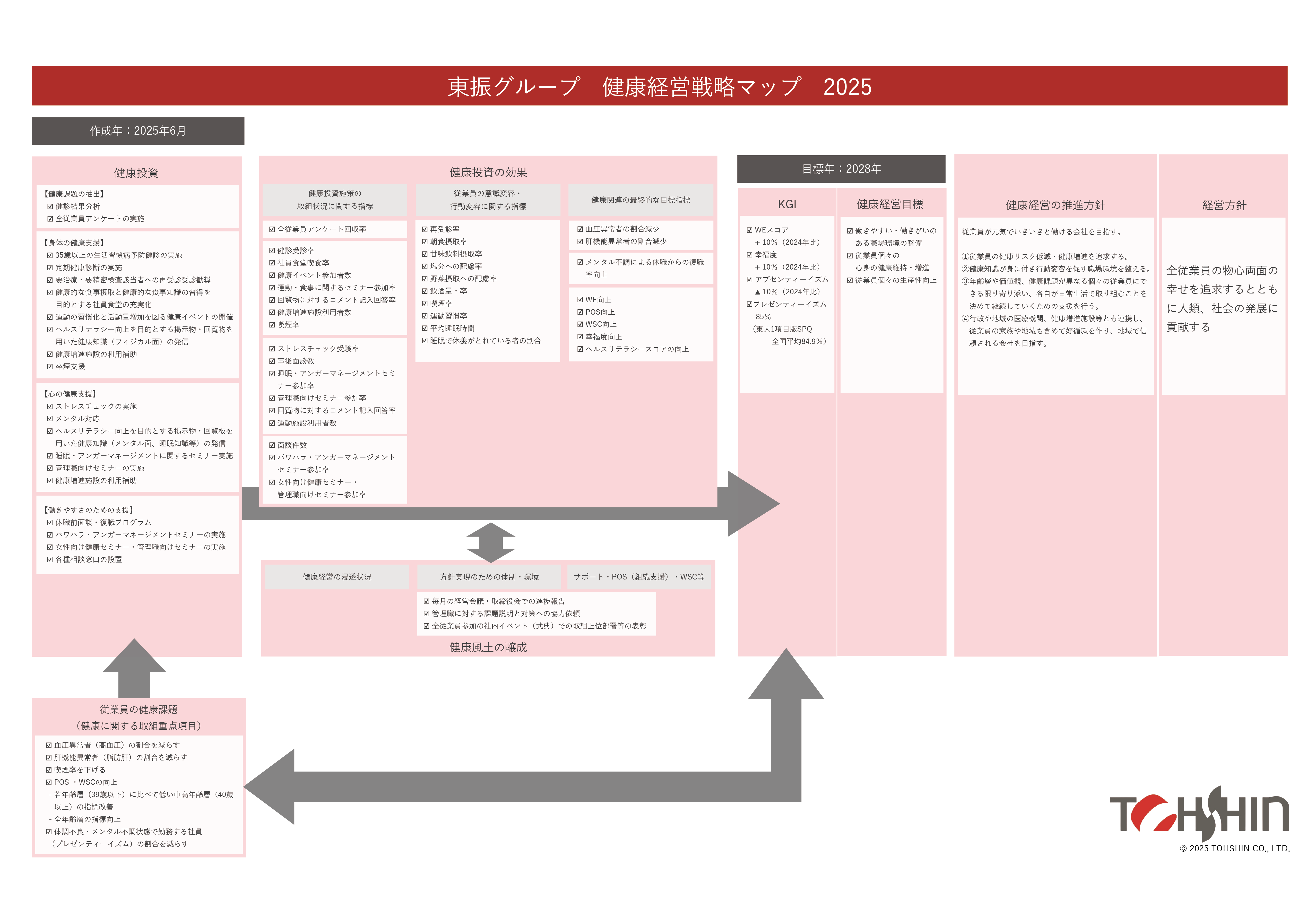 私たちの経営理念は「全従業員の物心両面の幸せを追求するとともに、人類・社会の発展に貢献する」です。従業員の健康への投資は、この理念を体現するための重要な経営課題であり、今後も健康経営の推進を通じて、より健全で持続可能な企業として成長し続けてまいります。そして従業員とその家族の幸福度を高め、地域社会ひいては広く社会への貢献を一層進めてまいります。